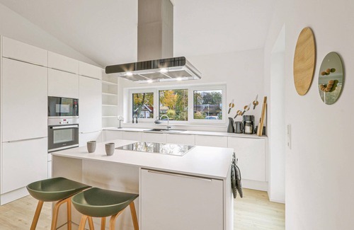welcome to your holiday home, which offers you as a family with children or as a group of friends a cosy, homely ambience in scandinavian style Thanks to the private indoor pool and sauna, a touch of luxury wafts through this house, whose living and dining area on the first floor welcomes you thanks to the open gallery with loft character. The open-plan kitchen invites you to cook and linger, while you can always find a sunny spot on the two terraces Up to 10 guests will always find enough privacy here, thanks to 5 bedrooms and 4 bathrooms. The furnishings in Scandinavian design are of high quality throughout and leave nothing to be desired.