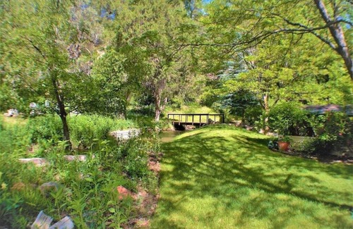 located just a short 10-minute drive north of the historic town of durango, nestled in a serene community, sits a delightful home with a tranquil creek-side setting and stunning mountain views, bordering the san juan national forest The residence offers a peaceful retreat in the heart of the Animas River Valley, featuring a bright and spacious great room adorned with high vaulted ceilings, cozy seating, and expansive windows providing breathtaking views of the backyard. Its prime location allows for easy access to the plethora of outdoor activities that southwestern Colorado has to offer. The great room is designed for entertaining and relaxation, accommodating gatherings of all sizes, complete with TV, a DVD player, and a Wii for entertainment. For added flexibility, there is a futon available for additional sleeping options. The dining area is capable of seating 8-10 people and provides a lovely view of the picturesque garden. The fully equipped kitchen is stocked with all the amenities one might need. Adjacent to the great room is a private home office area, furnished with a desk for those who need to attend to work matters during their stay. The home also provides an array of games, puzzles, books, and children's toys to keep younger guests entertained. The private master suite boasts a luxurious king-sized bed, a spacious ensuite bathroom with a double vanity, and is equipped with a flat-screen TV and DVD player. The two additional bedrooms include a peaceful room with a queen-sized bed and a cheerful children's room featuring a bunk bed and a cozy twin bed. Outside, the patio seating area for 8 people, which includes a comfortable dining area and Adirondack chairs, is the perfect spot to unwind and soak in the view. Follow the garden paths and wooden bridges over the little waterways that lead to the San Juan National Forest or simply relax, grill, and dine on the expansive back deck, which offers a splendid vantage point to admire the seasonal flower garden, catch sight of the local wildlife, and revel in the awe-inspiring mountain scenery. Please note that this is a split-level home, so some stairs are required.
