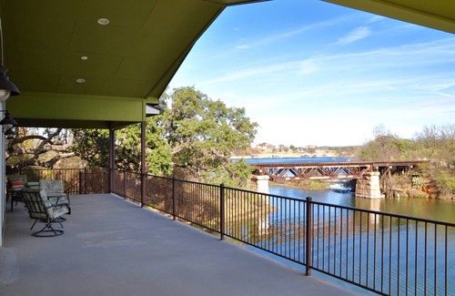 Large and beautifully appointed 5 bedroom home with 150 feet of waterfront on a peaceful, quiet cove overlooking Lake LBJ. Just under the historic (inactive) train trestle bridge to the main body of Lake LBJ. The cove right off the dock is great for swimming (3-5 feet deep around dock and no wake). Our dock and boat lift are available for your use and boat ramps are nearby. two kayaks and a stand up paddle board (sup) included!