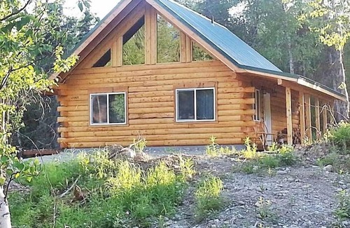This cabin is located on the waterfront and in an area with good shopping. Hatcher Pass Management Area and Finger Lake State Recreation Area reflect the area's natural beauty and area attractions include Musk Ox Farm and Reindeer Farm. Discover the area's water adventures with jet skiing and water skiing nearby, or enjoy the great outdoors with hiking/biking trails and cycling. Welcome to the Log Cabin at the lake. Serenity and privacy is all yours. Only a 15 minute picturesque drive from beautiful Palmer located in the Matanuska Valley. This is a new and contemporary log cabin built by one of Alaska's premier log home builders that sits on it's own private 1.25 acres in a small lake community. This is not in a cramped tourist area, here you get to enjoy Alaska like an Alaskan yet you are only 1 1/4 hours from Anchorage. But don't think you're sacrificing connectivity for the rustic life, the cabin is equipped with all the modern amenities of home including high speed internet, telephone (with free nationwide calling), Sling TV on a brand new 50" 4K UHD TV with movie channels and many premium programming choices. ROKU to enjoy streaming your favorite Netflix or Hulu subscriptions. Bluetooth Speaker which works with most mobile devices, radiant in-floor heating and of course a wood stove for those cozy nights in front of the fire. Be one of the first to stay and enjoy the zen relaxation of this home. There is a loft bedroom with his and hers closets and a beautiful view, queen bed, dresser and nightstands. Downstairs in the great room, one comfy queen Futon that sleeps two and a Simmons Beautyrest foldaway bed for those extra guests. The kitchen is modern and well equipped with a large french door refrigerator, dishwasher, full size stove, built-in microwave, toaster, coffee maker. Kitchen has all utensils and cookware. The dining area is spacious and comfortable, seats 6 and affords patio door access to the large open grilling deck with chairs, small table and BBQ Grill for enjoying the Alaska outdoors. There is a full length covered porch at the front of the cabin with Adirondack chairs and table for relaxing and watching the occasional Moose. The bathroom is large and modern with full size bath and shower. The cabin also has a modern washer and dryer with laundry items supplied.