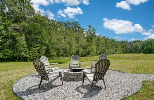 we have a fully stocked kitchen, dining room, dedicated work space, high-speed internet Additionally, the property features beautiful fields and outdoor space on our deck, patio and fire pit. Wood is provided for the fire pit - please use responsibly.