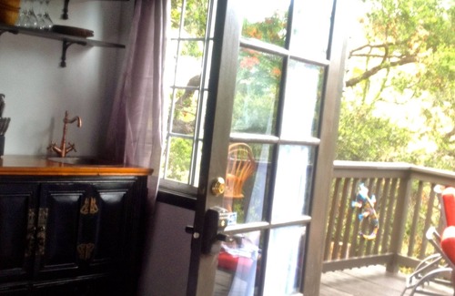 Lovely hideaway with California King Bed and gorgeous views. A most lovely and romantic spot. Use of the main house washer and dryer (located in outside building) between the hours of 12-5 pm (these hours protect privacy). Large Deck included with seating and views as well. The tiny kitchenette makes you self sufficient- Uber and Lyft easily accessible.