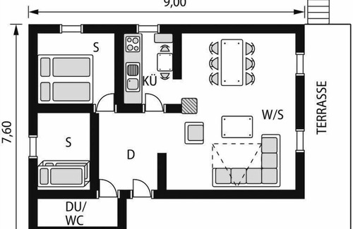 "grønnehytta", 3-room house 55 m2 Object suitable for 3 adults + 1 child. Practical and cosy furnishings: living/sleeping room, ceiling height 185 cm, Low door height 177 cm with 1 double sofabed, Scandinavian wood stove, dining table and satellite TV. 1 room with 1 double bed (150 cm, length 200 cm). 1 room with 1 bed (75 cm, length 200 cm). Kitchen (oven, dishwasher, 4 ceramic glass hob hotplates, toaster, kettle, microwave, freezer, electric coffee machine) with dining nook. Shower/WC. Electric heating. Terrace 10 m2. Terrace furniture, barbecue (portable). Facilities: washing machine. Internet (WiFi, extra). Please note: non-smoking house. Smoke alarm, fire extinguisher. Freezer approx. 400 l (shared use at the owner's place in approx 400 m). 924531169