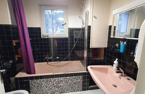 this 3-bedroom, 2-bathroom rental features a dining area and a desk Bathroom amenities include a hair dryer and a bidet. Prepare a home-cooked meal in the kitchen, complete with an oven, a stovetop, and a refrigerator, as well as a coffee maker, an electric kettle, and a microwave. And because there's a washer and dryer, you can go a bit lighter on your packing. Other amenities include heating, a desk chair, and a dining table.