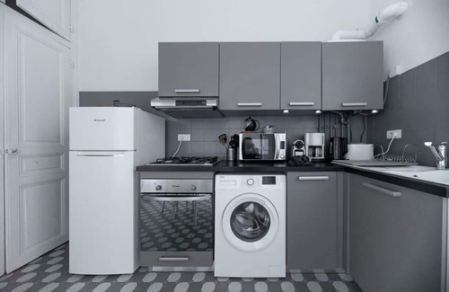 l'appartement se compose d'un salon, d'une salle à manger, d'une cuisine, de deux chambres, d'une salle de bain, et offre un accès wifi haut débit grâce à la fibre Il est situé au rez-de-chaussée d'un petit immeuble de trois étages. L'entrée peut se faire de manière totalement autonome.