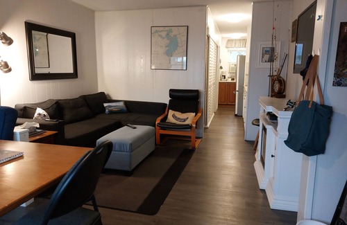 1 Bedroom, 3 Bed Lakefront cottage - just a few steps from the water. Great dock fishing, small beach, community pool, tennis court, club house full of books and games, two firepits, playgrounds, and a nice walking trail. Cottage comes fully equipped with a stove, toaster oven, blender, a stand up shower, electric fireplace and air conditioner. Wireless internet, and there are tons of DVDs to watch on the flatscreen TV. The couch pulls out to a double bed, the bedroom has a double-on-the-bottom single-on-the-top bunkbed,. Cottage has a patio with BBQ, table and chairs. 25 minute drive to Orillia, you won't want to leave but won't be far away from town if you need to grab anything. Great location for young kids, frog hunting and exploring galore. Spend your days lounging by the pool, driving to one of the many trails Muskoka has to offer, exploring the lakeside, or relaxing by the beach! BBQ on the patio and pool noodles in the deck box are waiting for you! We are very responsive hosts and would love to hear from you; Shoot us a message if you have any questions or inquiries. Thanks, Marika and Dave.