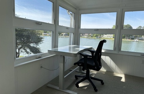 the main house has a remodeled kitchen can seat 5 at stools and 4 at bar stools from the porch side and opens to the dining room seating 10 comfortably There are 4 charming bedrooms and a large wrap around enclosed porch. The beds are queens, twins, and a full. Both bathrooms have been remodeled newly and are quite attractive and current in design. The furnishings are a combination of family pieces, antiques, and reproductions creating a very inviting and comfortable environment. There is a large screen smart TV in the living room with cable and internet as well as a fireplace. It is a great room for watching sports, having a fire, and being with friends and family in the off season. The first floor screened in porch provides a lovely view of the water, the pool, the point as well as a place to sit comfortably or at a picnic table for crab pickers. There is plenty of room for grilling outdoors and entertaining both inside and out.