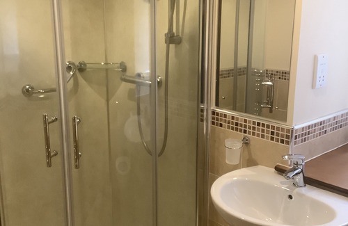 Three comfortable bedrooms, each with double bed, work-space, storage space, TV, and en-suite shower room. Living/dining area and fully equipped galley kitchen. Free parking close by. Wireless internet. Longer term rates available e.g. for those looking for accommodation while working in the area..