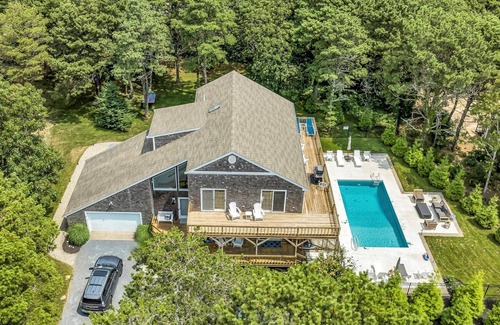 Located inside the gated community of Great Island, this large Cape Cod contemporary with a NEW PRIVATE HEATED IN GROUND POOL home is perfect for your next family vacation (bring the dog*, too!). You can't get much closer to the beach as you're a short distance to gorgeous private soft white sandy beaches on Nantucket Sound which is a prime location for Kite/windsurfing & fishing (private boat ramp). You will be only minutes from dining, shopping, golfing, and many children’s activities. In-season Sat to Sat.