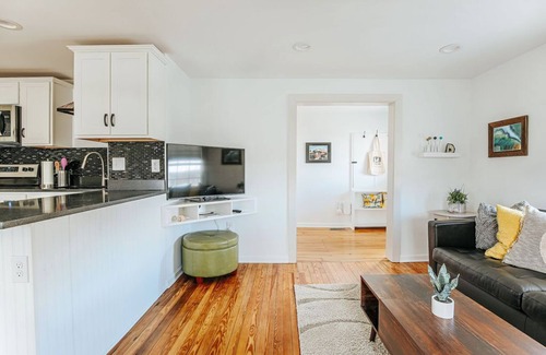The Little Green House on N. New St. is a historic home stylishly and lovingly renovated and decorated to suit your next getaway! This cheerful home is centrally located in Downtown Staunton and is just a 10 minute stroll to the iconic shops and dining located on East Beverley Street. With two queen bedrooms and a spacious backyard, this home is perfect for a small family, a couple, or even two couples.