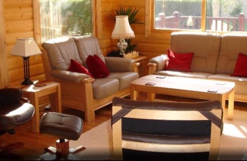 the sitting / dining area is very spacious and of high quality along with the crockery and cutlery and all of the above rests on a solid oak floor which is fitted throughout the lodges except in the bathrooms, they have tiled floors For group bookings from seven to ten people, both lodges will have to be booked.