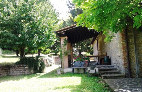 (Text automatically translated) The house is set in a complex of two houses in stone, restored to homes with porches and big courtyard garden surrounding, overlooking the Tiber valley at the confluence with the Black, with easy reach of shops at 1 km in the medieval village of Guadamello and hiking opportunities. The 4-hectare estate with vineyards, olive groves and fruit trees, suggests the medieval town of Orte. E 'characterized by great peace and privacy while having held similar neighbors. Do not miss the sunset! The decor is very nice style appropriate to campagna.Il porch is a natural continuity with the kitchen area and is also equipped with barbecue. The master bedroom is located on a feature and a large loft area. For our guests there will be a free liter of oil produced in our olive grove..