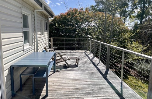 off street parking is available and halcyon days has a large fenced yard that can accommodate well behaved dogs that don’t want to miss out on the family holiday There is a large deck at the rear with views down to the bay filtered by beautiful big gum trees.