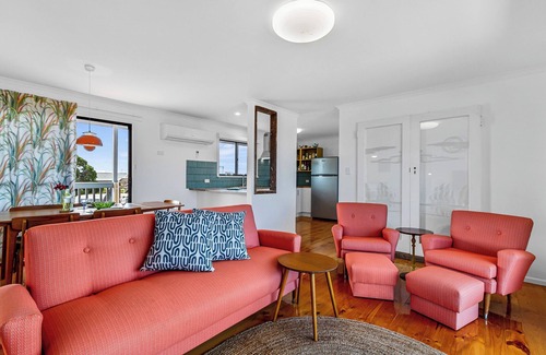 HALCYON HARDWICKE BAY is an elevated holiday home that has been tastefully renovated and has amazing sea views and sunsets! This property accommodates up to 6 guests on the Esplanade with the beach across the road. styled with authentic and collectable mid-century furniture and fittings, an outdoor entertaining area under the house which is sure to please!