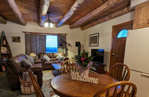 this unique and cozy home, that comfortably sleeps four adults will have you enjoying high-speed internet, a small office workspace, hd tv, a generously equipped kitchen, and a front-load washer and dryer, bbq grill and outside patio with table top fireplace Best of all, enjoy a brilliant star-filled sky while soaking in a hot tub right outside your door..