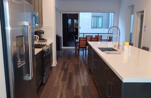 Luxury single family residence, the incredible kitchen has quartz countertops and huge refrigerator, 2 TVs and fresh vinyl flooring throughout. 3 Bedrooms are located on the 3rd floor, another master bedroom is the 4th bedroom on the ground floor with full bath. The rooftop deck is above it all with views and Short 5-10 min Uber to the Carnival, Viking, Princess and other cruise lines and walk to the new boardwalk. 2 car garage. Wonderful restaurants nearby and art galleries, coffee and tea houses and a few bars. Live music on some nights. Great for long stays..