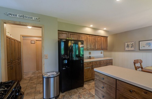 this 4-bedroom, 4-bath home comfortably sleeps 10, and has everything you need with modern amenities and plenty of space to relax and play, all while maintaining that classic “up north” feel Relax on the wrap-around deck and watch for bald eagles and loons, or take a dip in the lake and enjoy the sunshine by exploring this chain of three lakes by canoe or kayak. for adventures, upper gresham also offers world-class fishing and water-sports!