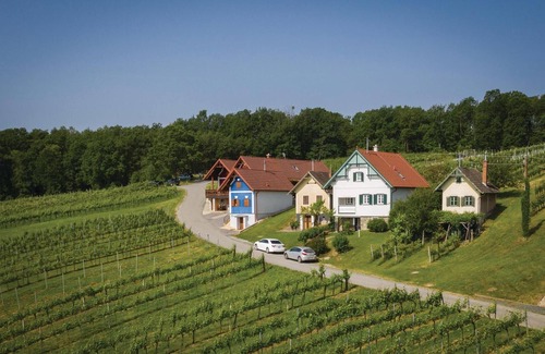 This newly renovated Kellerstöckl is located in the middle of the Gaas vineyards, next to the hotel's own wine tavern with a view of the Hungarian lowlands. In the immediate vicinity is the water adventure world where you can cool off on hot summer days. Numerous cycling and hiking trails invite you into nature. E-bikes can be hired in the municipality of Eberau. In the wine arbour behind the house, surrounded by meadows and vineyards, you can sample a good drop or two. The Kellerstöckl is modernly equipped, the spacious eat-in kitchen and the living room offer enough space for a cosy get-together. In the 2 bedrooms on the upper floor you will find your well-deserved night's rest, but if it is too quiet for you, why not pay your hosts a visit in the newly built wine tavern next door (open from time to time). Here you will be spoilt with delicacies from the region and homemade wine. You are welcome to take home wines from the extensive wine selection (prices from 6,- to 15,-). In the cooler months the owner can charge a small heating fee.