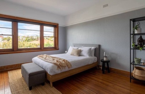 This spacious and welcoming stay is ideally located less than 10 minutes' drive from Hobart's CBD. Explore the nearby sights, stay in and cook up a feast, dine indoors or out, or kick back in one of the two living rooms while enjoying spectacular views of the Derwent River and cityscape. The spacious layout offers plenty of room for families or groups to relax and entertain with a wonderful outdoor gas fire where many laughs and joy can be shared. This is stay is a perfect home-away-from-home. Originally named and built in 1939, Hawke on Sherbourne perfectly combines its original art deco features with today's modern conveniences which make it a unique stay and will certainly evoke memories of earlier times for some. Perfectly situated in West Hobart a short distance from the Hobart CBD and waterfront precinct, this tranquil stay provides an ideal base for those wanting to explore this renowned region or simply unwind in their own private retreat. Upon entering the home you will be greeted by the wide entrance foyer and the sympathetic retention of the original art deco details. The entrance foyer leads you down to the open plan first living, dining and kitchen areas. You can stock up on fresh gourmet produce at the local market farmers market or the famous Salamanca market and make use of the fully equipped kitchen, where you’ll find everything needed to prepare meals at home, including a fridge, freezer, stove, oven, microwave, kettle, toaster and other cooking essentials like pots, pans and utensils. Eat together at the six-seater dining table , or head out the french doors to the backyard and use the six-seater outdoor table. Of an evening you can enjoy the soft glow of the festoon lights or wander up to the back of the garden and light up the outdoor gas fire pit. In the first living room, a large sink into the large sofa kick back with a movie or simply lay back with your favourite book. In the second living area off the entrance foyer you will find the the sumptuous second sofa where you can take in panoramic views overlooking the city and the Derwent River and contemplate the day. Two well-appointed bedrooms accommodate four guests. The spacious master bedroom features a king-size bed with walk-in robe and enjoys the use of the newly upgraded ensuite bathroom complete with double vanity, walk-in shower and a freestanding bath where you can enjoy a good soak using the complimentary locally made bath salts. The second bedroom featuring queen-size bed is spacious with it's own built in robe. It also enjoys the views over the city to the Derwent River. The neatly appointed second bathroom features a shower and a bathtub, and you’ll also find all the essentials including bodywash, shampoo and conditioner and a hairdryer. Seperate laundry facilities include a washing machine and dryer. Additional conveniences include Wi-Fi, air-conditioning, and secure parking for one car on the premises. During your stay, you and your group will have the entire house to yourself. Please make yourself at home! Please read and respect the house rules. This is very much appreciated, thank you! Before your arrival, we will also share a house guide that contains instructions on how to access the property, use certain appliances, and anything else you may need to know..