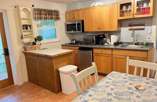 Take it easy at this unique and tranquil getaway. A cozy 600 sqft. cottage tucked away on the backside of the island. Secluded, yet just minutes away from downtown. Enjoy our two patios, both have a beautiful of our palms and pines. We have a full kitchen with a gas stovetop, microwave, countertop convection oven, and refrigerator. Laundry is no problem, we have a washer and dryer for your use. Our outdoor gas grill is perfect for a BBQ. The bedroom has a comfortable queen size bed..