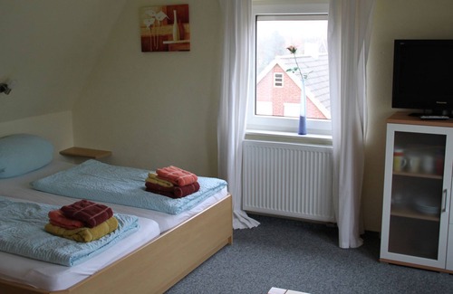 the builder of the house, heinrich wissmann, after the war, when there were hardly any jobs on langeoog, found his livelihood in finding stones from the mud flats (so-called "shotguns"), which were then used for bank protection were installed at the port Through his work he has been nicknamed "Hein Flint". Later, Mr. Wissmann has his captain's license and offered his own ship excursions for island guests.The house is located in a quiet side street, just a few minutes from the center. It is completely renovated and houses seven modern apartments, all of which (the German fixed network) and Internet (Wi-Fi) are equipped with kitchen, shower, TV, free phone. In the house are apartments and maisonettes with garden. Apartments with private terraces have its own beach chair available. In the basement of the house there is a sauna, solarium, infrared Wärmekabineund damp room bio sauna. Washer and dryer can be used for a fee. Pets are allowed..