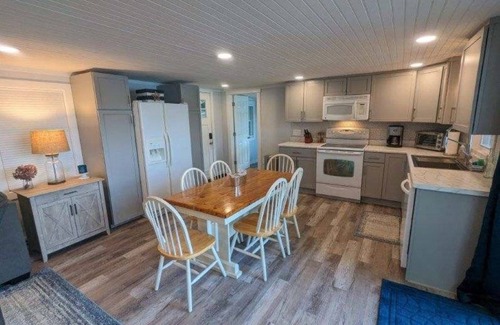 Nestled away on a small, private lake on the outskirts of Batavia lies a hidden treasure... A picture perfect place to get away from all the stresses of modern day life. You will feel like you've escaped to someplace much further away than you actually are - yet options for shopping, dining and entertainment can be found just minutes away. If you love the serenity of waterfont property, but don't love the sounds of jetskis and party boats screaming by all day, then this is the place for you! The Getaway is a freshly remodeled three bedroom, one bath lake house. The master bedroom includes a queen bed and features incredible lake views as well as a sliding door to the lakeside deck. The second bedroom is on the back of the house and also features a queen bed. The third bedroom is a converted sunporch with walls of lake view windows and includes a comfy full size futon. The main entertaining space consists an open concept floorplan with full brand new kitchen open to great room. The great room sectional sofa also includes a pull out bed for overflow sleeping, better suited to kids than adults. A wall of windows allows for incredible lake views day and night..