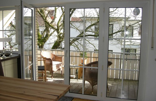 city apartment in a quiet hidden location, within walking distance to the city center, exclusive apartment, 60 sqm in 2 Floor with open kitchen, large dining table and TV. South balcony, 1 garage, 1 parking space. The light flooded apartment in 2. Floor can be reached via the bright, friendly staircase. It has a generous floor plan with solid wood parquet. The bathroom with underfloor heating is newly renovated! The house is located in a restricted traffic area, exceptionally quiet. The bedroom has a double bed 180 x 200 cm equipped with orthopedic mattresses, allergy-friendly - washable bedding. All windows are equipped with blinds.