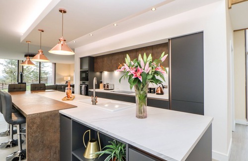 amenities: ground source heat pumps with electric fire Electric oven and hob, microwave, fridge/freezer, washer/dryer, dishwasher, wine chiller. Smart TV with Netlix, speakers, WiFi. Fuel and power inc. in rent. Bed linen and towels inc. in rent. Off-road parking. Enclosed rear garden with lawned area, decking, hot tub and furniture. Two well-behaved dogs welcome. Sorry, no smoking. Shop 0.6 miles, pub 0.2 miles (10 minute walk). Note: There are steps up to the decking, please take care. Note: The en-suite in the master bedroom is open-plan with the rest of the room, please consider this when booking. minimum 3 night stay