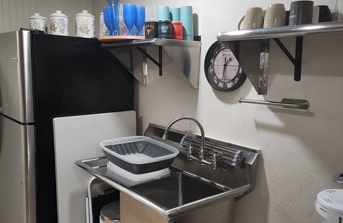 The High End Luxury Cabin is up to 8 guests only. What guests love about our "High End Luxury Cabin" is that it gives our smaller families an experience in staying at a beautiful and comfortable home setting. Our beautiful, 2-bedroom cabin is spacious and well appointed. Includes: pool table (bring your own pool sticks), a Foosball table, 4 electric recliners, 2 leather recliners, a large screen TV with surround sound and high speed WIFI. Enjoy the oak dining table for 6 guests, plus, additional tables for 6. There is a new stainless-steel kitchen Hi- Tech style. It is considered a compact kitchen with a deep single sink, refrigerator, electric range, microwave, coffee maker, cookware and so much more. Please note: The kitchen is for 1 or 2 chefs at a time. It is considered "compact". All dishes will be washed by hand, no dishwasher, no garbage disposal, no washer/dryer is available. Host suggests that you bring paper goods, such as plates, cups, so that you will have an easier clean-up. Otherwise, there are plenty of dishes. For your outdoor experience we just built a large deck for picnicking and propane barbecue. Free off-street parking at the lower entrance for 3 vehicles . Host can make additional parking available for ATV's and trailers. Please message the host if you need this additional parking.