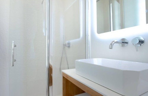 the apartment boasts three spacious bedrooms, each with its unique character The master suite includes a comfortable double bed and a private bathroom with a contemporary island bathtub. The other two bedrooms, also equipped with double beds, offer exceptional comfort with a private bathroom each, featuring elegant Italian showers.