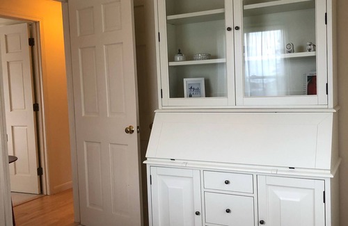 across the hall you enter the third bedroom This room has a full-sized bed, nightstand with lamp, closet and a beautiful writing desk. All three bedrooms have L.L. Bean bedding to assure that you have the most comfortable place to rest your head in between your Maine adventures.