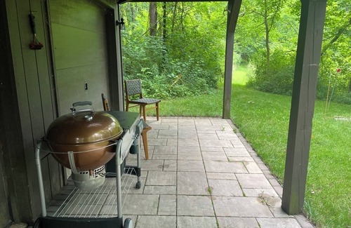 Come and visit our clean and cozy one bedroom cabin in the wooded hills of Guernsey county Ohio and relax on the spacious deck and listen to the sounds of nature, take a trail walk on the 19 acre property, or stay inside and ask Alexa to play your favorite tunes or stream a blockbuster movie on the 65" 4k UHD TV with 7.2.4 Dolby Atmos surround sound, the choice is yours..