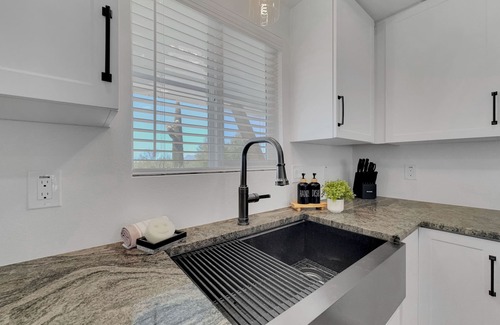 but it's not just about outdoor living here - step inside this fully remodeled 2 bedroom, 1 bathroom home and you'll find luxurious accommodations fit for royalty Both bedrooms boast king-sized beds and super-sized TVs for ultimate comfort and privacy. The spacious bathroom is conveniently located between the bedrooms, making it perfect for sharing.