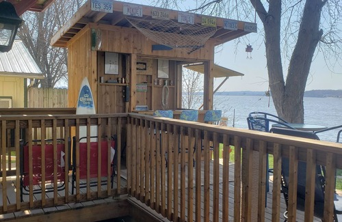 Spend some relaxing time staying at our historic building on the Mississippi River in Hampton, Illinois. We have a spacious deck facing the river for that morning coffee with a Tiki bar for those afternoon and evening cocktails with beautiful sunsets. Fish off the pier. Bring your boat, kayak, canoe or jet-ski (there is a boat ramp a mile away) and spend the day on the river or at the sand bar beach a mile and a half downstream. Bring your bicycles because The Great River Trail bike path is literally right out the front door. There is a beautiful 33 acre park about 7 blocks south with an 18 hole Frisbee golf course. Illiniwek Park is just a half mile away with nature/hiking trails. As part of the Greater Quad Cities, Moline, Rock Island, Davenport and Bettendorf are only a few minutes away.