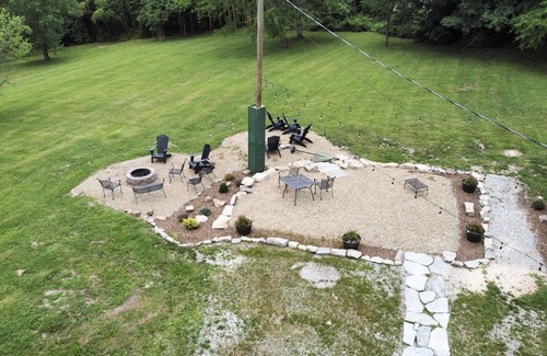each space inside casa provides you with a stunning view of the property The house is surrounded by a garden to the east, a forest to the west, and a fantastic backyard to the south. The backyard is a beautiful, wide-open space, perfect for family activities, space for your pets to roam, picnics, and making memories by the fire-pit, roasting marshmallows for s'mores, and searching for the incredible stars and constellations.