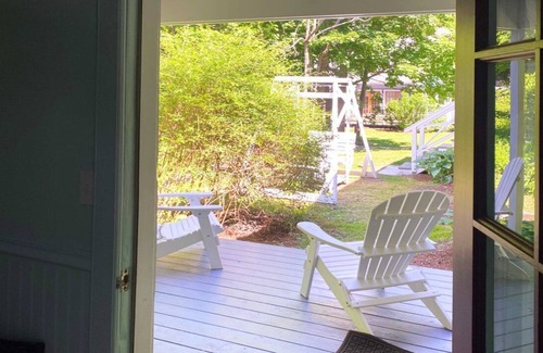 guests can enjoy a shared private patio, complete with adirondack chairs and a swing, perfect for unwinding amidst nature The room is thoughtfully designed to provide a welcoming ambiance, making it ideal for both leisure and business travelers.