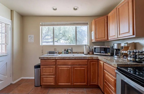 Historic Tucson Studio + 1BA Near UA & UMC - Low Summer Rates! 🏡 has 1 Bedroom , 1 Bathroom, and max occupancy of 2 people. The minimum rental for this property is 1 nights, but this can change depending on the season you plan on staying. Previous guests have given good rated it, and VRBO labeled it a top-rated Apartment because of the excellent services rendered by the owner or manager of this Apartment, and has consistently provided great experiences for their guests. Most families or guests that use it recommend it to their friends and some of them are repeat guests. Apartment has a friendly neighborhood, and the Blenman-Elm has interesting places to visit. If you want to learn more about the Apartment in Blenman-Elm, such as places to visit and things to do nearby, you can check below to learn more.