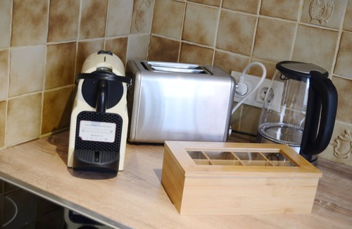 this 2-bedroom, 1-bathroom rental features a living room, a dining area, and an office Bathroom amenities include a hair dryer, towels, and toilet paper. Prepare a home-cooked meal in the kitchen, complete with an oven, a stovetop, and a refrigerator, as well as a coffee maker, an electric kettle, and a microwave. And there's access to laundry facilities, so you can even pack a bit lighter.