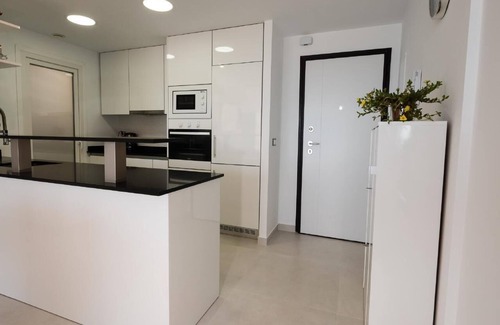 the "infiniti-holiday" flat is located on the fifth floor and consists of two bedrooms, both of which offer beautiful views of the mediterranean sea, as well as a living room One area has a huge terrace with a set of rattan furniture, and the other has a table and chairs for outdoor dining. The property has heating and air conditioning. There are built-in wardrobes in each room. Both bathrooms are equipped with underfloor heating and a shower. There is free WiFi! Those travelling by car can park their car in the private underground car park.