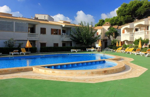 Yes, this Cala Agulla apartment has a swimming pool. Check the Facility Overview section for details about the pool and other available facilities.