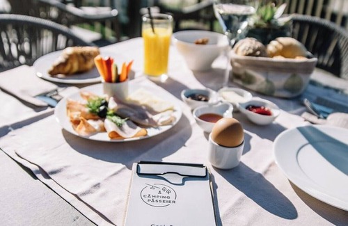 a major advantage of your stay is the unlimited use of all facilities at the adjacent campsite, such as the pool, spa area, and the cozy bistro Some services or amenities are available for an additional fee.