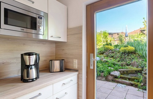 the apartment is located in a sunny, central area without through traffic Restaurants, grocery store, bakery, post office, hiking trails and the swimming pool (free entry with guest card) are all within a five-minute walk. Offenburg and Oberkirch are each 7 km away, Europa-Park Rust 30 km and Strasbourg 25 km. The apartment is an ideal starting point for excursions to the Black Forest, France or Switzerland.