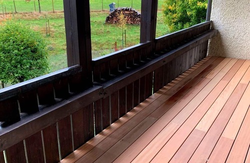 large balcony, sunny location with a view of the mountain The balcony offers a great opportunity for yoga.