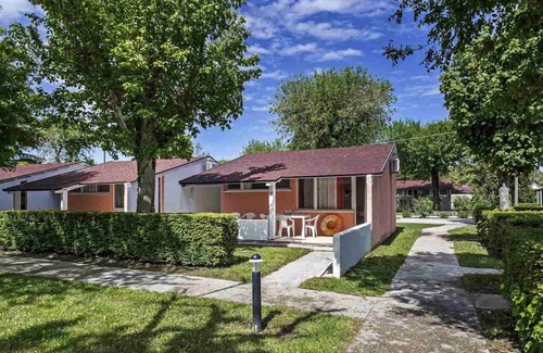 5 stars, 547 beds, reception (24 hour service, safe), 2 restaurants, pizzeria, bar, pool bar, common room, internet (wlan) and children's playroom The central safe can be used for a fee. LocationCaorle, district Caorle. The holiday apartement is located on a 32000 sqm garden plot with flowers, bushes and trees. The holiday center covers an area of 320,000 square meters and has a private beach over 500 meters long. Inside there are 578 residential units in the center of a large green oasis as well as large shady parking spaces. it has a