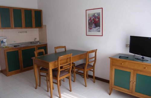 The holiday apartment is located in an apartment house and is furnished in a functional and typical country style. The property is located in a residence. Also due to its sunny location the domicile is popular. Available for use: terrace and lift.Holiday resort24 accommodations, reception, bar, internet (WLAN) and TV room. LocationGarda. The holiday apartement is located in a residence, on a enclosed plot, bordered by a fence. The residence is just 10 minutes' walk from the shores of Lake Garda. Access is via a path (asphalted). Parking (for 1 car) is available on the property. Specialair conditioning, central heating. Use of the air conditioning is available upon request when booking for a fee on site. The air conditioning can only be used from approximately July 1st to August 31st.Facilities: internet access (WLAN) and phone. TV reception takes place via satellite. The accommodation is set up suitable for the disabled. PoolAll pools are available for shared use. Outdoor pool (4 m x 8 m). The pool area is on the roof. Dogsnot allowed. DistancesShopping 300 m, restaurant 100 m, town center 300 m. Garda: bank 100 m, doctor 110 m, thermal bath 1300 m and pharmacy 400 m. railway station in Peschiera del Garda 17,2 km. airport in Verona Valerio Catullo 34,1 km. 3.5 km from the Baia delle Sirene Park In summer: Lake Garda 500 m in Garda (beach 600 m in Garda featuring gravel and stones). Garda: tennis 1300 m, golf 3 km and mini golf 3,8 km. DivisionHoliday apartment, 1 floor, 2 rooms (including 1 bedroom), 45 sqm, in total 5 beds (including 3 additional beds), on request additionally 1 child up to 2 years in a baby cot. RoomThe entrance to your holiday apartment leads directly into the living & bedroom. Bedroom with 1 double bed, 1 baby cot and Instead of the double bed, there could be two single beds. Living/bedroom with 3 additional beds on couch/sofa, TV, dining area (5 seats), access to the balcony and safe. Cooking nook in the living & bedroom with gas stove, fridge, coffee machine and instead of a coffee maker there could also be a kettle. Oven on request when booking. Bathroom with shower, 1 washbasin, WC and hairdryer. Credit cardsVisa, MasterCard. Terms of lease and pricesIncluded in the priceOutdoor pool, internet access, parking place, electricity, gas, water, heating, pool, bed linen (first usage), baby cot – please order at booking, hand towels (first usage), Wireless Internet access. Side costs-Costs on the spot:/Obligatory:final cleaning of the kitchen to be carried out individually. final cleaning (if not performed by the tenant) 50 € per object per stay. local tax by local tariff (if charged).On request:garage 6 € per car per day. safe 15 € per object per stay. bed linen 10 € per person per change. hand towels 10 € per person per change. cleaning (daily) 50 € per object per week. Air conditioning - please order at booking 60 € per object per week (01.07.25-31.08.25).Deposit:EUR 100,-/object.