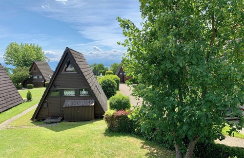 In our small detached roof-only house you live in the Immenstaad vacation park, with a view of Lake Constance and the mountains and a short distance from the lake. You live on two levels with your own garden and terrace. There are numerous playgrounds, a chess field, boules court, table tennis, climbing wall, bicycle rental, bakery, grocery store and restaurants in the park and nearby. You can reach the town center in just a few minutes on foot, by bike or by car. You can also use the free local bus service. The bus stop is right next to the vacation park.