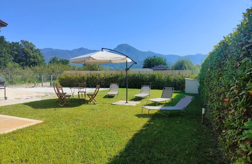 Newly built holiday home, comfortably and modernly furnished and equipped with a garden with a covered veranda, near the long sandy beaches of Lido di Camaiore on the Versilia coast. The two-storey holiday home with two bedrooms and two bathrooms is located in a quiet countryside area 4 km from the sea. Ideal holiday home for families, the covered and furnished veranda overlooking the garden is particularly inviting. Here you can spend the day starting with breakfast and ending with pizza in the wood oven. The fine sand and sandy beaches of the seaside resorts of Lido di Camaiore, Viareggio and Forte dei Marmi can be reached in 15 minutes by car. Walking barefoot on the warm sand, swimming, cycling or just relaxing, here you can enjoy wonderful days on the beach or visit the wonderful mountains of the nearby Apuan Alps Details: WiFi Nearby activities: In addition to the beautiful long sandy beaches, the beautiful Versilia coast offers many possibilities for sports and entertainment: long cycle paths along the sea, pine parks with pony rides, palm promenades with shops, cafes and restaurants, colorful weekly markets (clothing), Yacht and fishing port (freshly caught fish) in Viareggio. There are good train connections from Viareggio to Florence for those interested in art and culture. The island of Elba (about 1 hour by ferry from Piombino) with its island charm is worth a day trip. also visit the unique white marble quarries of carrara (35 km) not suitable for people with reduced mobility the owner accesses the property for garden maintenance