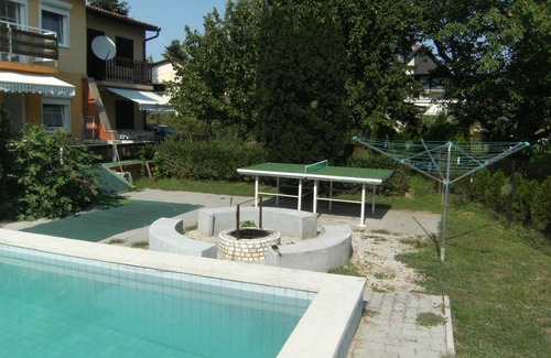 hungary, balatonszárszó The modern furnished holiday home (built in 2000, renovated in 2010) is located in a semi-detached house, in a cottage area and has peaceful and sunny location. Access is via a paved secondary road. Parking for 2 cars on the property. Purchase 500 m, restaurant 300 m, center 500 m.