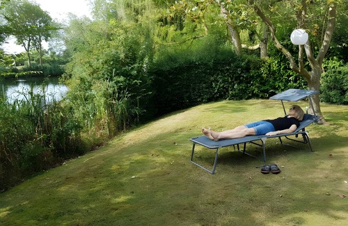 your private garden is located at the edge of a park and borders the water of a small lake, creating a peaceful atmosphere On the private, uncovered terrace, you can relax and enjoy the tranquil surroundings.