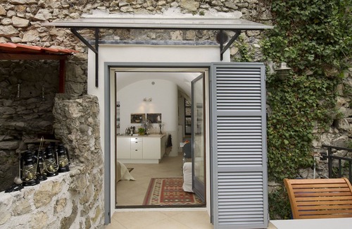 Ever wanted to sleep in an ancient Italian olive mill? Do not imagine a narrow high house and mill winds! The 1817 olive press and the millstone driven by a donkey were in a vaulted space. In the vault is an open kitchen with a dining table. In the same room there is a seat for relaxing. Romantic and comfortable.